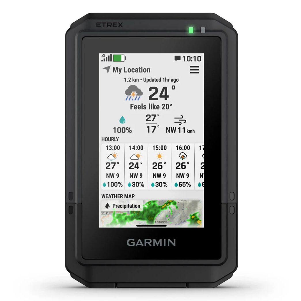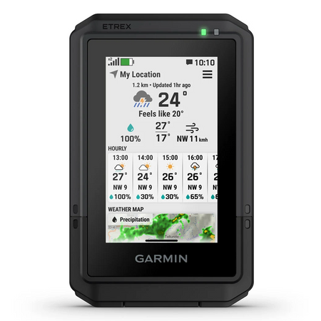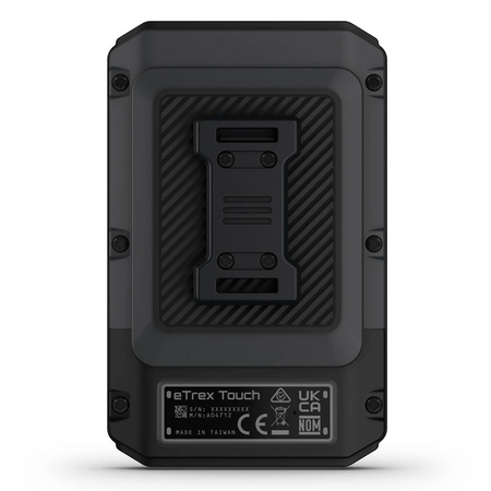 The eTrex Touch handheld is purpose-built with an IP67 water rating and impact-resistant (MIL-STD-810) design to withstand weather and rugged conditions.