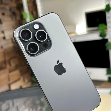 The iPhone 15 Pro in Black Titanium delivers premium design and power. Featuring the A17 Pro chip, Dynamic Island, USB-C connectivity, and a stunning Super Retina XDR display - it provides flagship performance and top-tier features at pre-owned value.