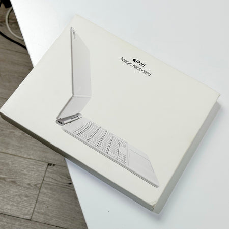 The Apple Magic Keyboard for iPad Air 11-inch (M3) in White delivers a premium typing and trackpad experience in a sleek, floating design. It attaches magnetically to your iPad and provides a comfortable, responsive keyboard along with a built-in trackpad for precise control.