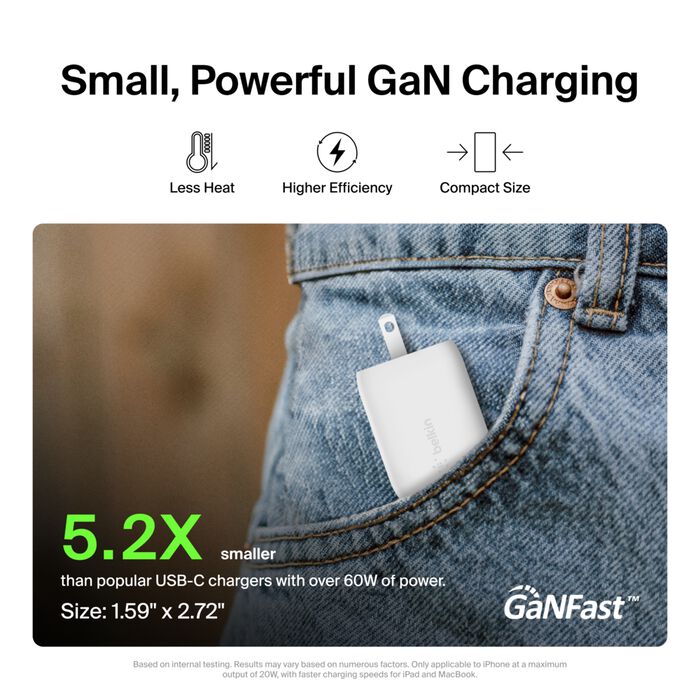 • Advanced GaN technology for efficient and compact charging