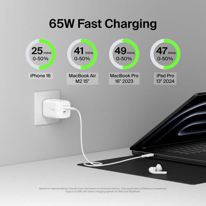 • Belkin BoostCharge Pro 65W Dual USB-C GaN Wall Charger