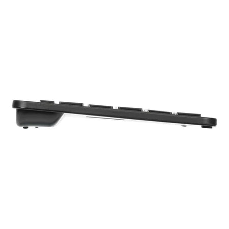 This sleek keyboard and mouse duo are easy-to-use and have enhanced comfort features. The sculpted shape of the mouse guides your hand to a naturally comfortable position, while its two buttons and scroll wheel let you move quickly between web pages. The modern, slimline design of the keyboard has a low profile for easy storage, but full keypad allows you to type comfortably.
